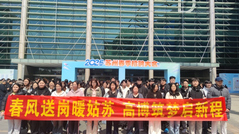 为全面落实高校毕业生高质量充分就业工作要求,扎实推进学生就业工作,精准对接苏州产业人才需求,搭建高效优质的校企双向选聘平台,3月21日,我校精心组织学生参加苏州市举办的2026苏州春季招聘大会,抢抓春季招聘关键窗口期,多措并举全力助力学子实现更高质量、更充分就业。